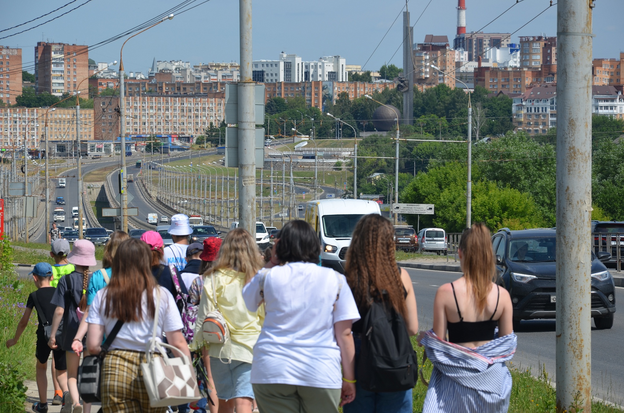 От памятника юные туристы двинулись в сторону Воробьёвской переправы, где через овраг Можайка вышли к Мемориальному скульптурному комплексу-памятнику воинам 50-й армии. Возле него детям рассказали об объекте, они возложили к нему цветы и зажгли «Свечи памяти».