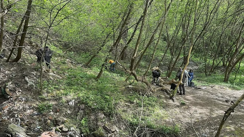 Большая работа по сбору мусора была проведена в Березуйском овраге. Волонтеры, представители организаций и органов власти собирали старые ветки, разбитое стекло и другой мусор.