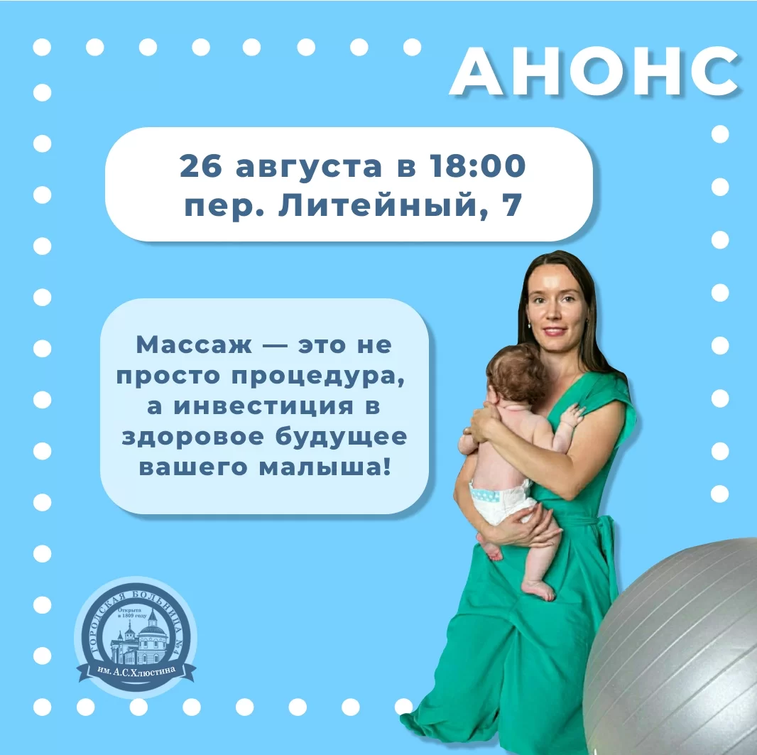Мероприятие проведет дипломированная медицинская сестра и опытный детский массажист Марина Шилина. Участники узнают о правильной технике массажа, его пользе для развития ребенка и отработают практические навыки на специальном манекене.