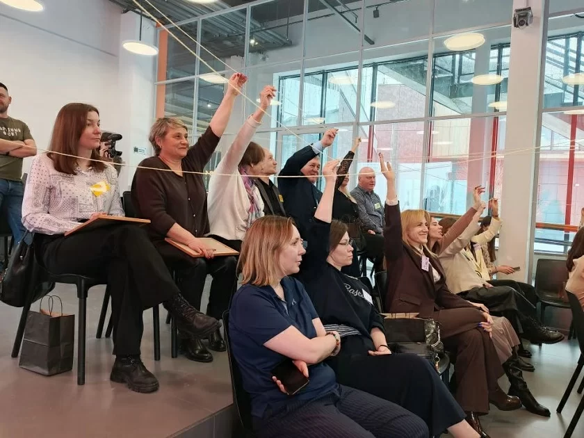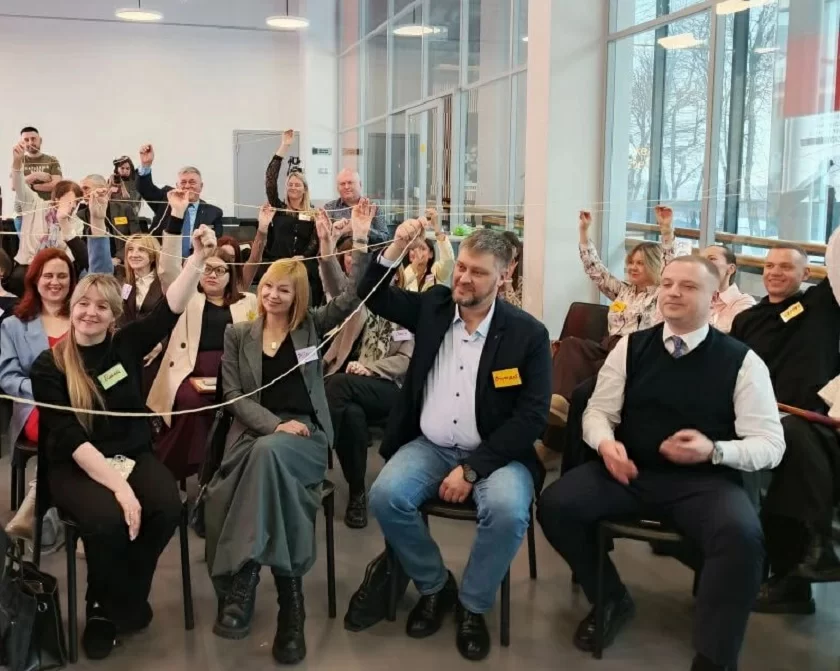 Встреча продолжилась интерактивной игрой, в которой передаваемый из рук в руки клубок ниток превратился в символ единства.