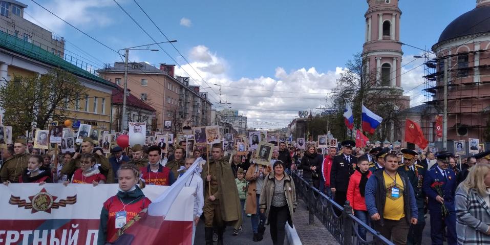 Торжественное шествие прошло по улице Кирова впервые с 2020 года, когда началась пандемия. Колонны местных жителей и гостей города прошли от сквера Мира до площади Победы, где состоится возложение цветов к могиле Неизвестного солдата.