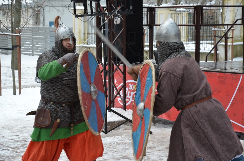 Посетители парка получили возможность увидеть воинов древней Руси и Византии в полном боевом облачении, узнать о достоинствах того или иного оружия и доспеха, а также понаблюдать за поединками между лучшими калужскими мастерами мечевого боя.