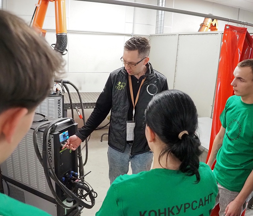 Сегодня на площадках чемпионата прошел инструктаж по технике безопасности, студенты и школьники знакомились с оборудованием.