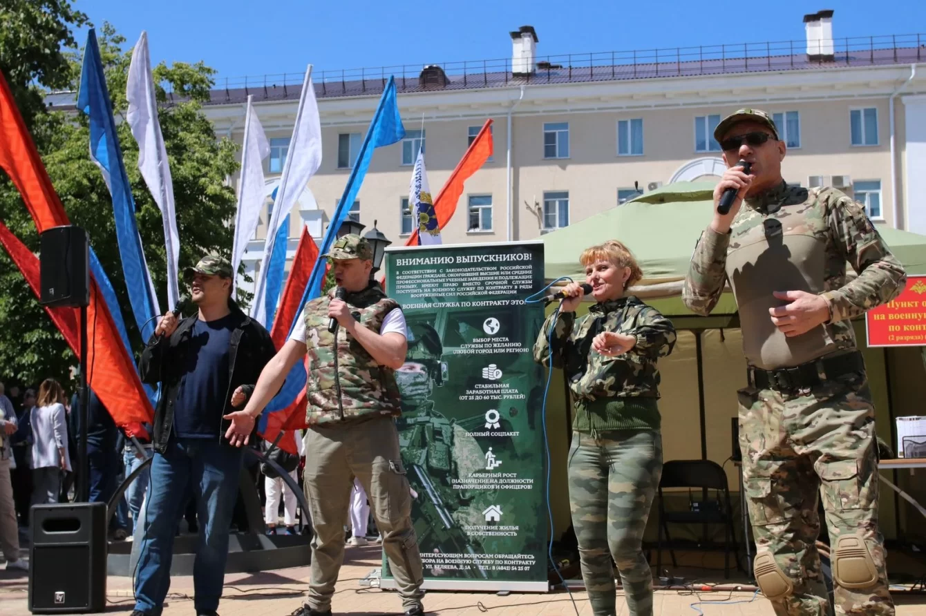 Недалеко от Калужского областного драматического театра развернулся мобильный пункт отбора на военную службу по контракту. Калужане могут потренироваться в сборке оружия, попробовать солдатскую кашу.