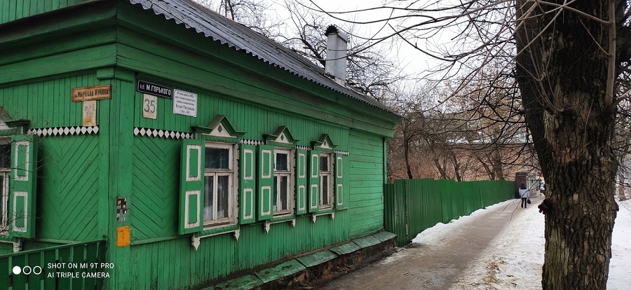 В 1952 году в доме №35 на улице Максима Горького жил поэт Булат Окуджава. Недавно ограду здания повредил тракторист, который управлял снегоуборочной техникой.