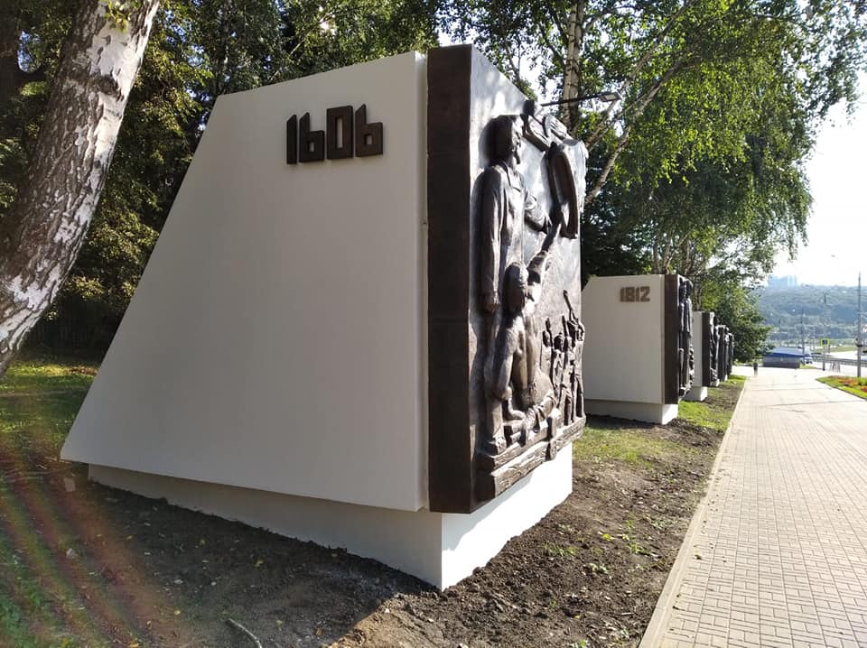 Реставраторы восстановили цифры исторических дат на пилонах с отреставрированными бронзовыми рельефами по улице Гагарина. Установили цифры на законно место накануне.
