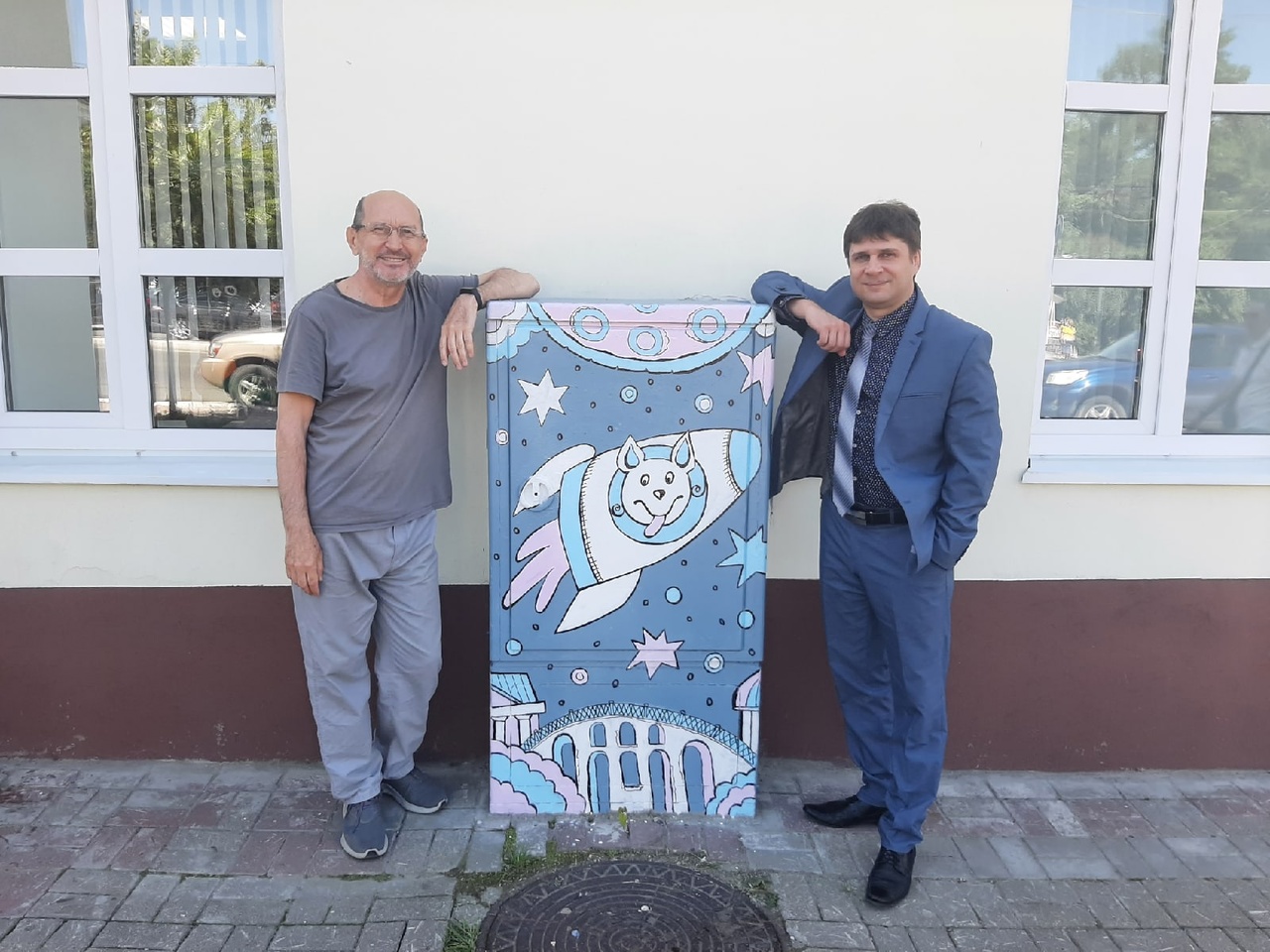 Художники Калужского театра кукол Татьяна Кушнир и Марина Соколова расписали несколько фасадных ящиков в центре города. Их украсили кот в скафандре и собака в летящей над Калугой ракете.