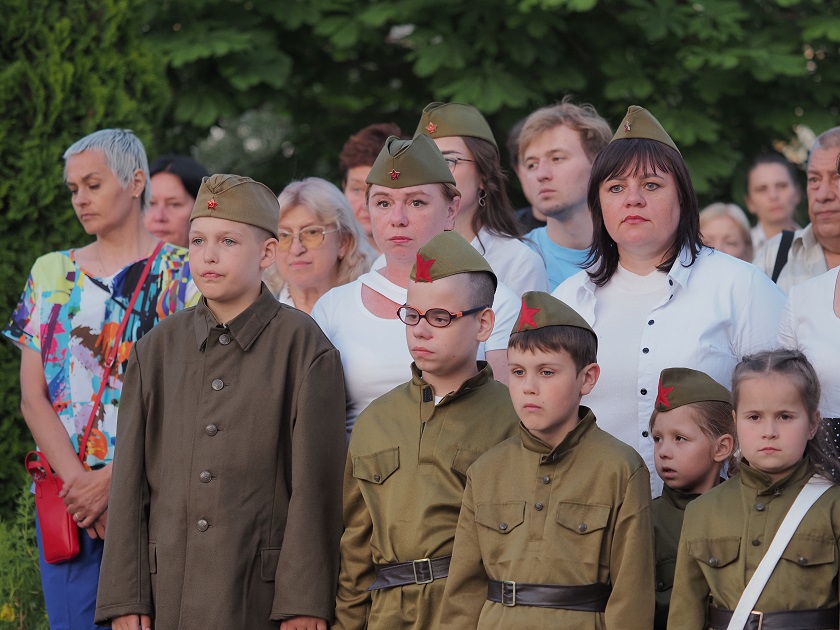 На нескольких планшетах в сквере можно было увидеть детские рисунки, присланные на творческий конкурс, организованный музеем истории православия при храме. Их победители были отмечены наградами. А кульминацией вечера стало выложенное большими буквами из свечей на плитках сквера слово «Помним». В этом приняли участие практически все, кто находился на мероприятии.