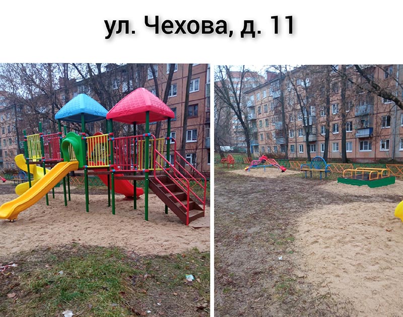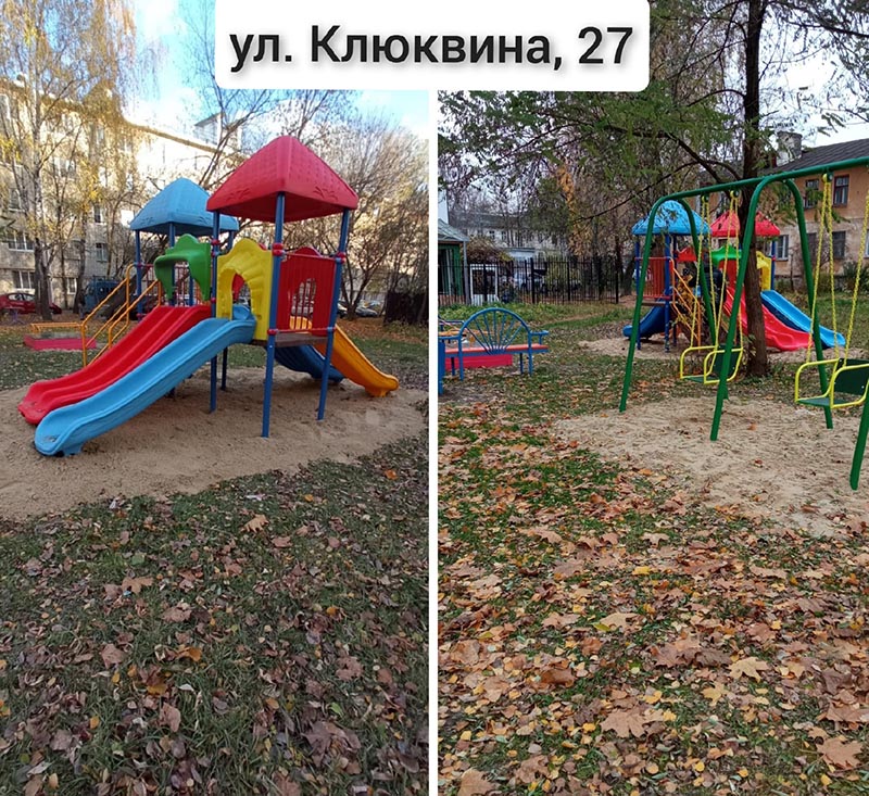 Так на ул. Чехова, д.11 появился игровой комплекс, песочница, качалка-балансир, декоративное ограждение, качели и урна. На ул. Клюквина, д.27 - игровой комплекс, качели, скамьи, песочница и урна. В поселке Росва на ул. Московская, д.6 –игровые комплексы, качели, качалки, лазы, песочница, скамейки и урны.