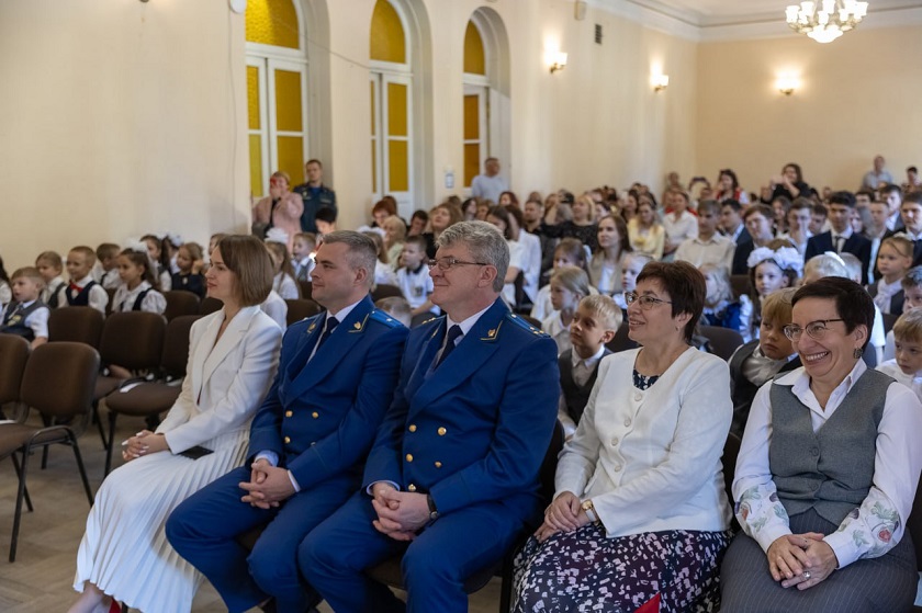 Права дать первый звонок были удостоены 11-классник Дмитрий Кутузов и ученица 1 «А» класса Аврора Ермакова.