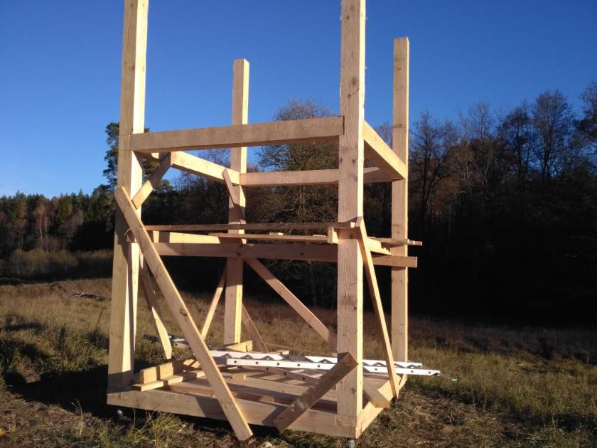 Площадку на винтовых сваях разместили в урочище Клягино, где расположены биотехнические сооружения солонцы и кормушки для подкормки животных, и где в снежный период есть большая вероятность увидеть на близком расстоянии, сфотографировать или снять на видео стадо зубров, кабанов и других лесных жителей.