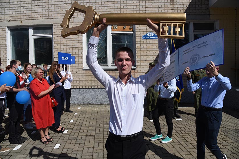 - Вы поступили в старейший технический ВУЗ страны, который за все годы подготовил более 200 тысяч инженеров. В свое время в нем учились такие знаменитости, как Шухов, Туполев и Королев. Может быть, и среди вас сейчас стоят будущие Шуховы и Королевы. Никогда не сдавайтесь, успехов вам!