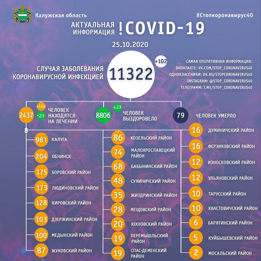 Всего выздоровело 8806 калужан. За сутки выздоровевших всего 23 человека.