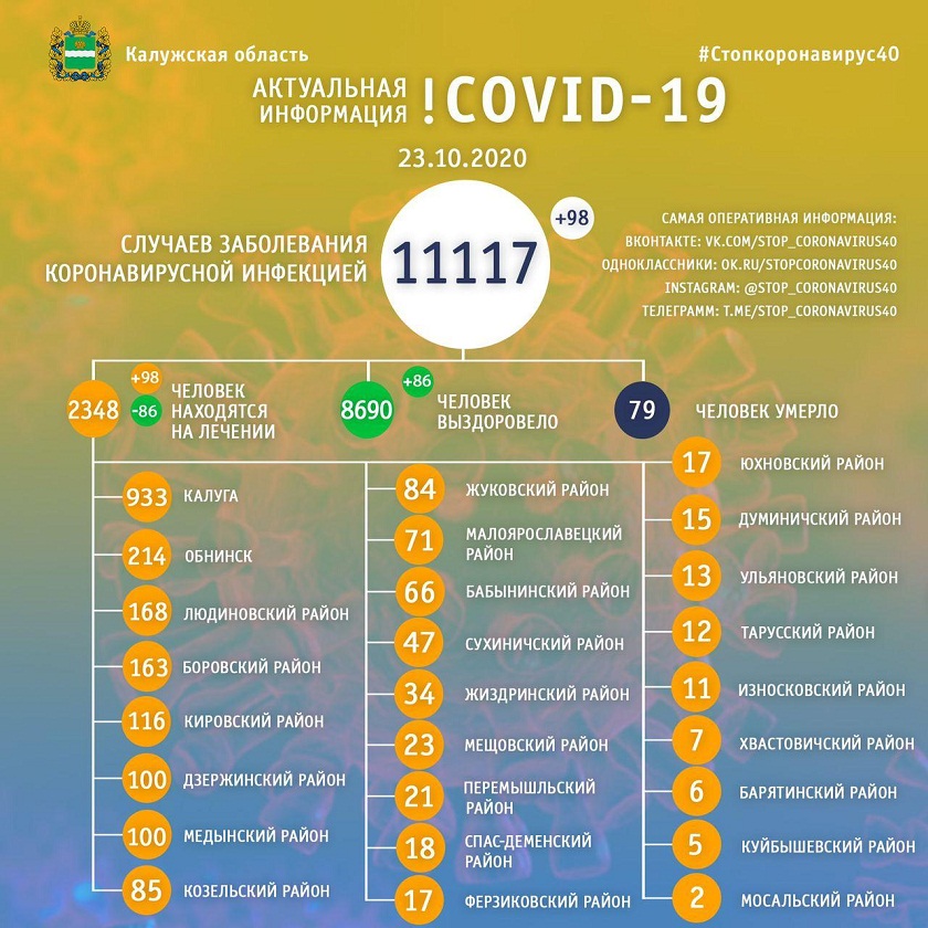 Умерло 79 калужан. Новых подтвержденных случаев не выявлено.