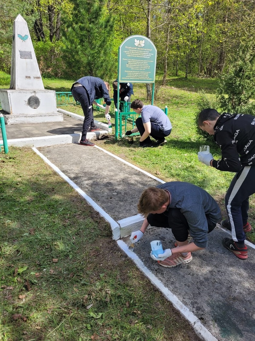 На памятном месте был убран мусор, покрашены бордюры и ограждение.