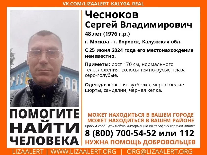 Как указано в ориентировке поисково-спасательного отряда «ЛизаАлерт», мужчина ростом 170 сантиметров, нормального телосложения, с серо-голубыми глазами и темно-русыми волосами. В последний раз его видели в красной футболке, черно-белых шортах, черной кепке и сандалиях.
