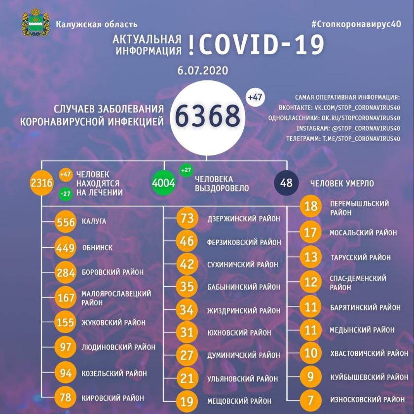 Всего с начала пандемии в регионе зафиксировано 6368 подтверждённых случаев заболевания коронавирусной инфекцией, из них 47 за последние сутки.