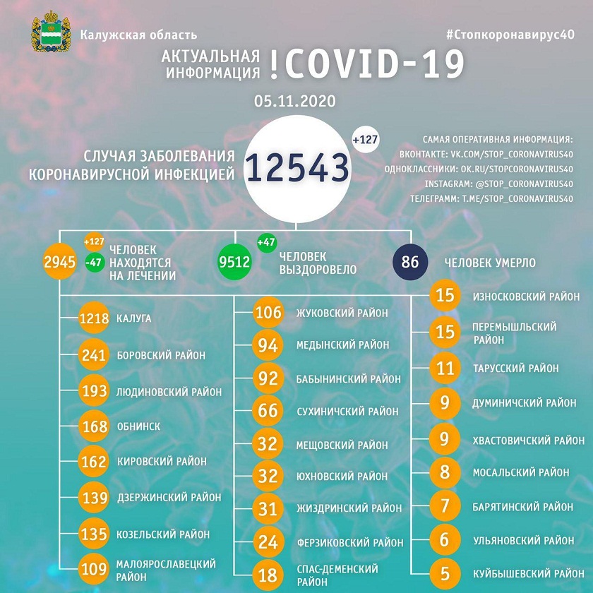 Выздоровело за все время инфекции 9512 жителя Калужской области, а за прошедшие сутки 47 из них.
