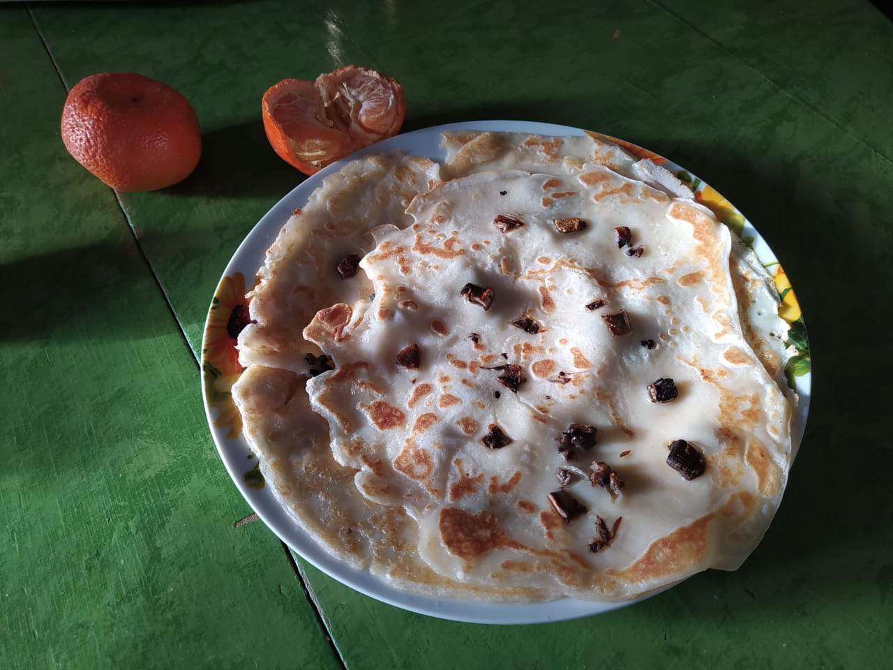 Возьмем пол-литра молока, 2 яйца, 2 ч. л. сахара, щепотку соли, 200 г муки, 2 с. л. растительного масла.