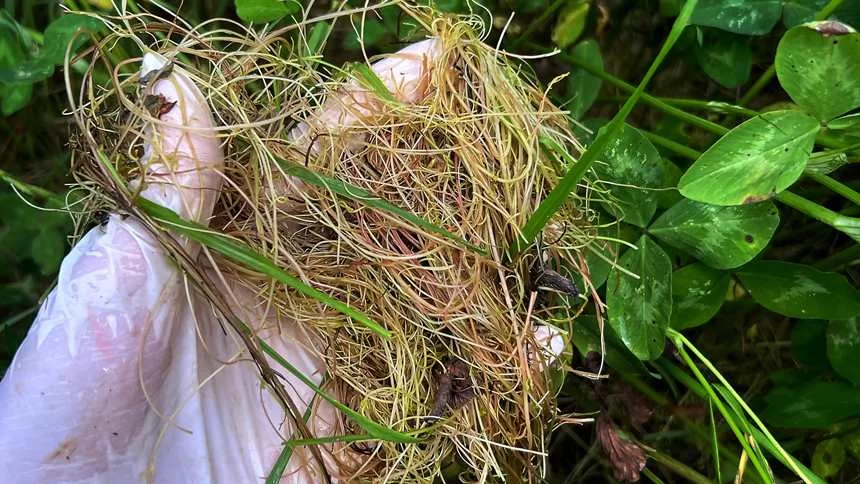 Это растение-паразит, которое внесено в список карантинных объектов. Оно обвивается вокруг культурных растений и может полностью погубить урожай.