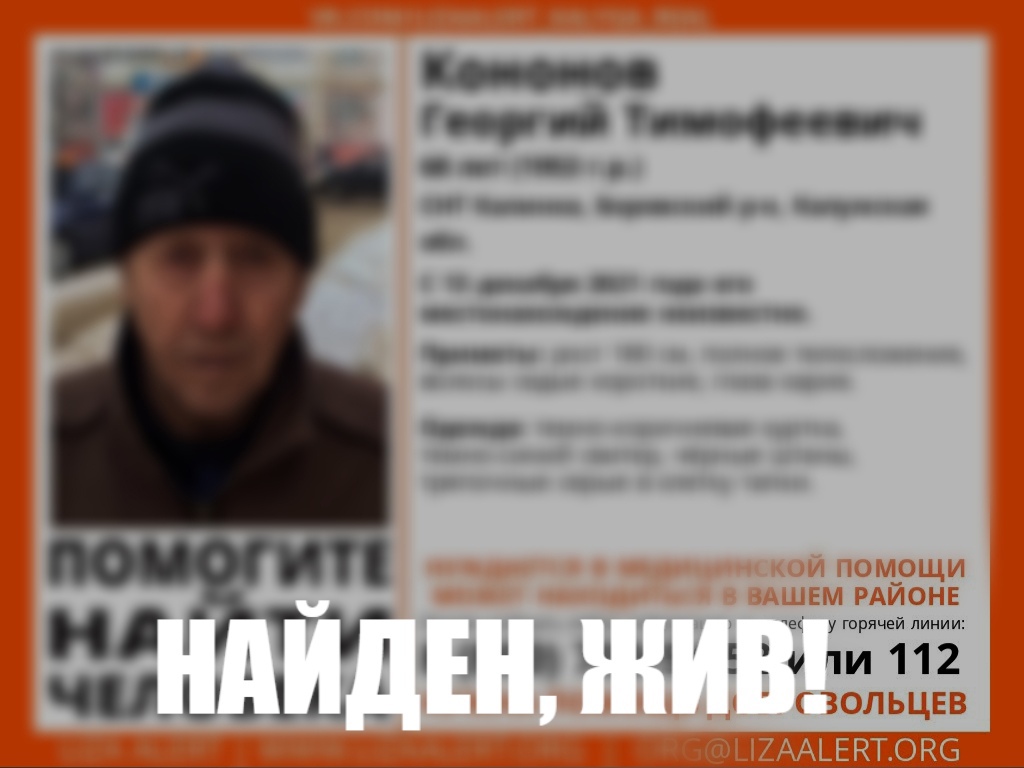 Напомним, как мы писали ранее, мужчина ушел из дома сегодня, 13 декабря. Волонтёрам удалось найти пропавшего менее чем за сутки.
