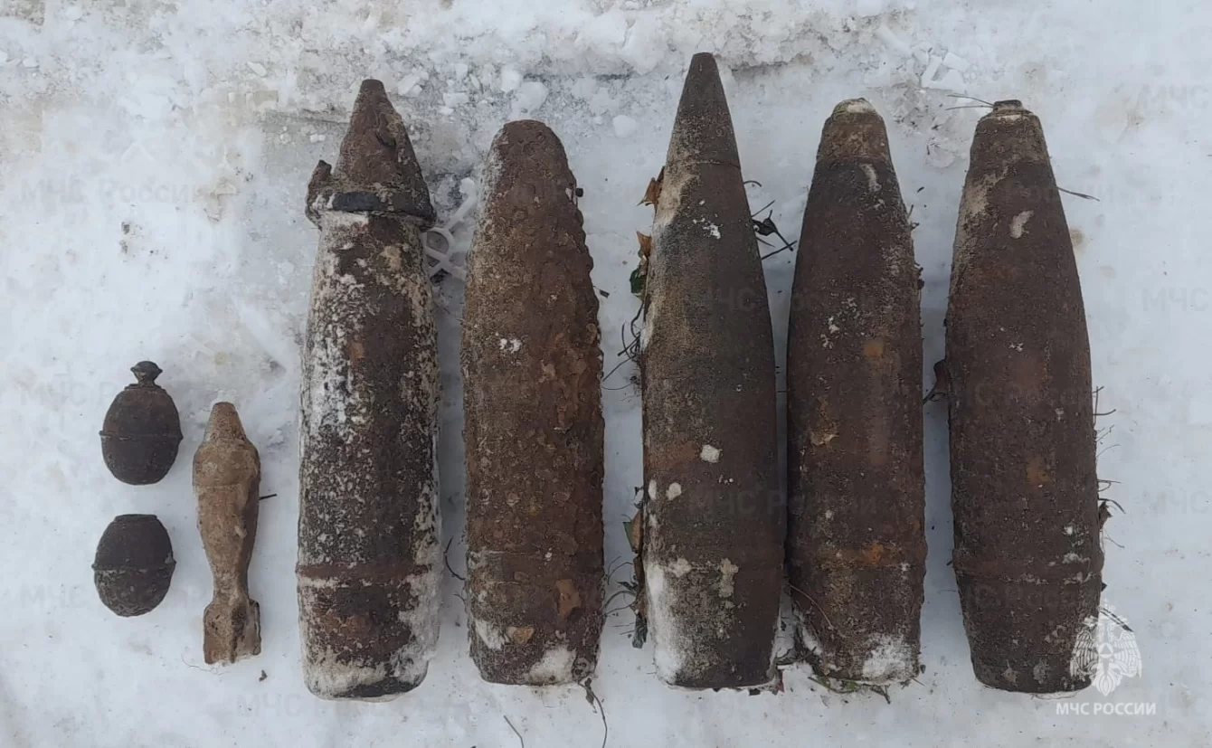 В лесу в двух километрах от деревни Глинное Ульяновского района были обнаружены восемь взрывоопасных предметов времен Великой Отечественной войны. Это пять артиллерийских снарядов, две ручные гранаты и одна минометная мина.