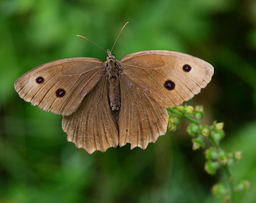 Сатир дриада или бархатница дриада – Minois dryas (Scopoli, 1763) – это дневная бабочка размером 28-35 мм. На ее переднем крыле находятся два глазчатых пятна с голубым «зрачком».