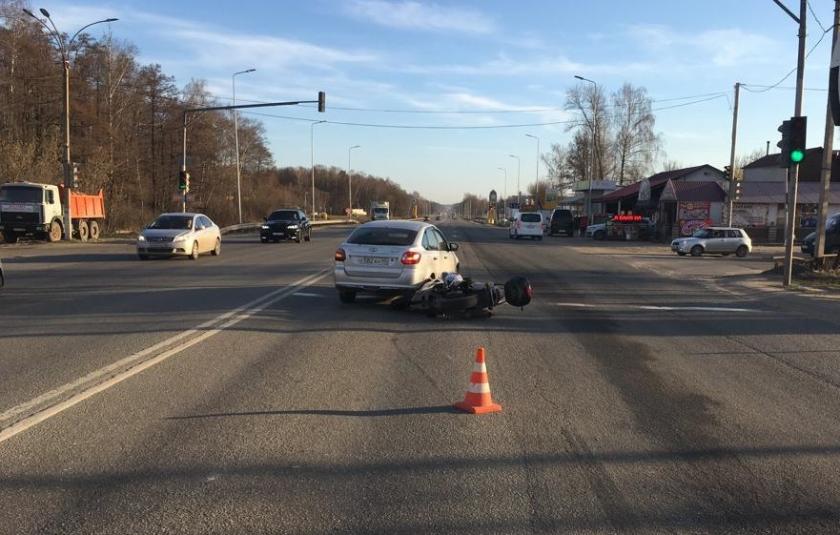 ДТП случилось на 103 километре автодороги М-3 «Украина». 31-летний мужчина, управляя мотоциклом Кавасаки, двигался со стороны Москвы в направлении Брянска по левой полосе движения. На регулируемом перекрестке перед светофором мотоциклист резко затормозил и налетел на стоящую автомашину Лада под управлением 29-летней девушки. В результате происшествии пострадал водитель мотоцикла Кавасаки, мужчина получил различные травмы с которыми госпитализирован в медицинское учреждение.