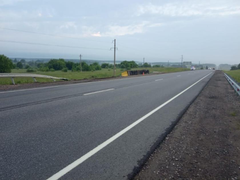Ночью 15 июня в Бабынинском районе на 228 километре автодороги М-3 Украина грузовик Iveco с полуприцепом налетел на отбойник и опрокинулся в кювет.