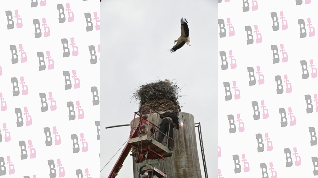 Сегодня, 12 мая, сотрудники Калугаоблводоканала приступили к ремонту покосившейся водонапорной башни. Рабочие планируют срезать верхний бак и сделать вместо него площадку, куда можно будет поместить гнездо.