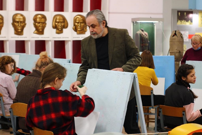 Закончил встречу Гари Азатов мастер классом. На нем художник учил азам масляных красок юных художников из школы искусств.