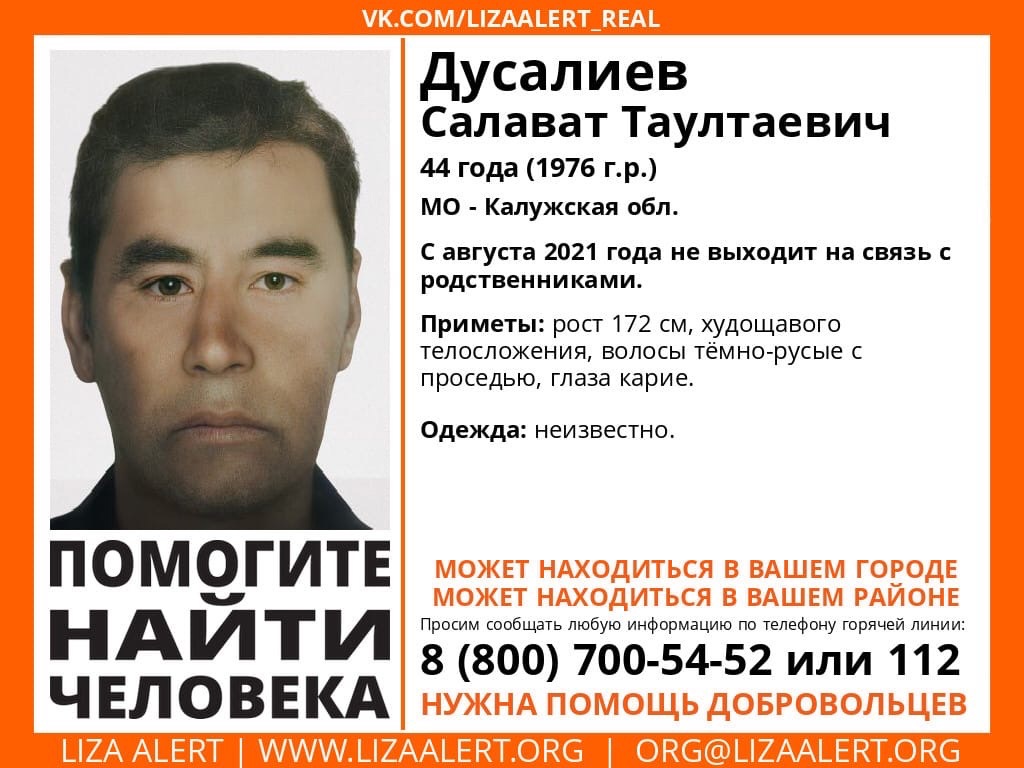 Дусалиев Салават Таултаевич с августа текущего года перестал выходить на связь с родственниками. Может находиться в Калужской или Московской областях.