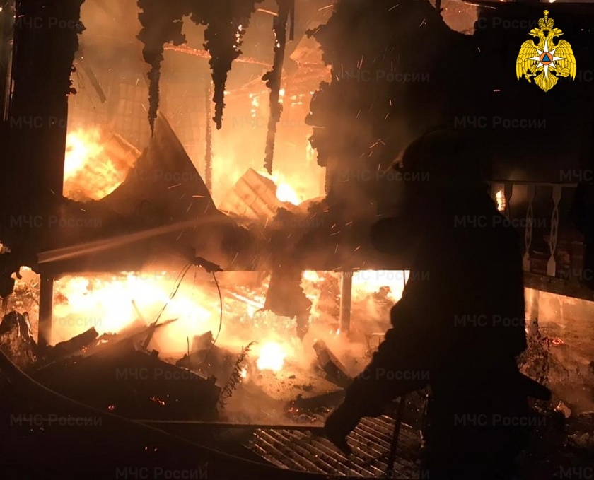 Судя по фото, предоставленных ведомством, огонь поглотил частные дома полностью и вызвал обрушение фасадов здания. В сообщении отмечается, что при возникновении и тушении пожара никто не пострадал.
