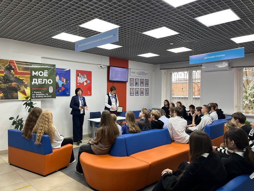 На встрече для ребят провели экскурсию по кадровому центру, модернизированному по национальному проекту «Демография», рассказали о работе региональной службы занятости населения и требованиях, которым должны соответствовать работники службы.