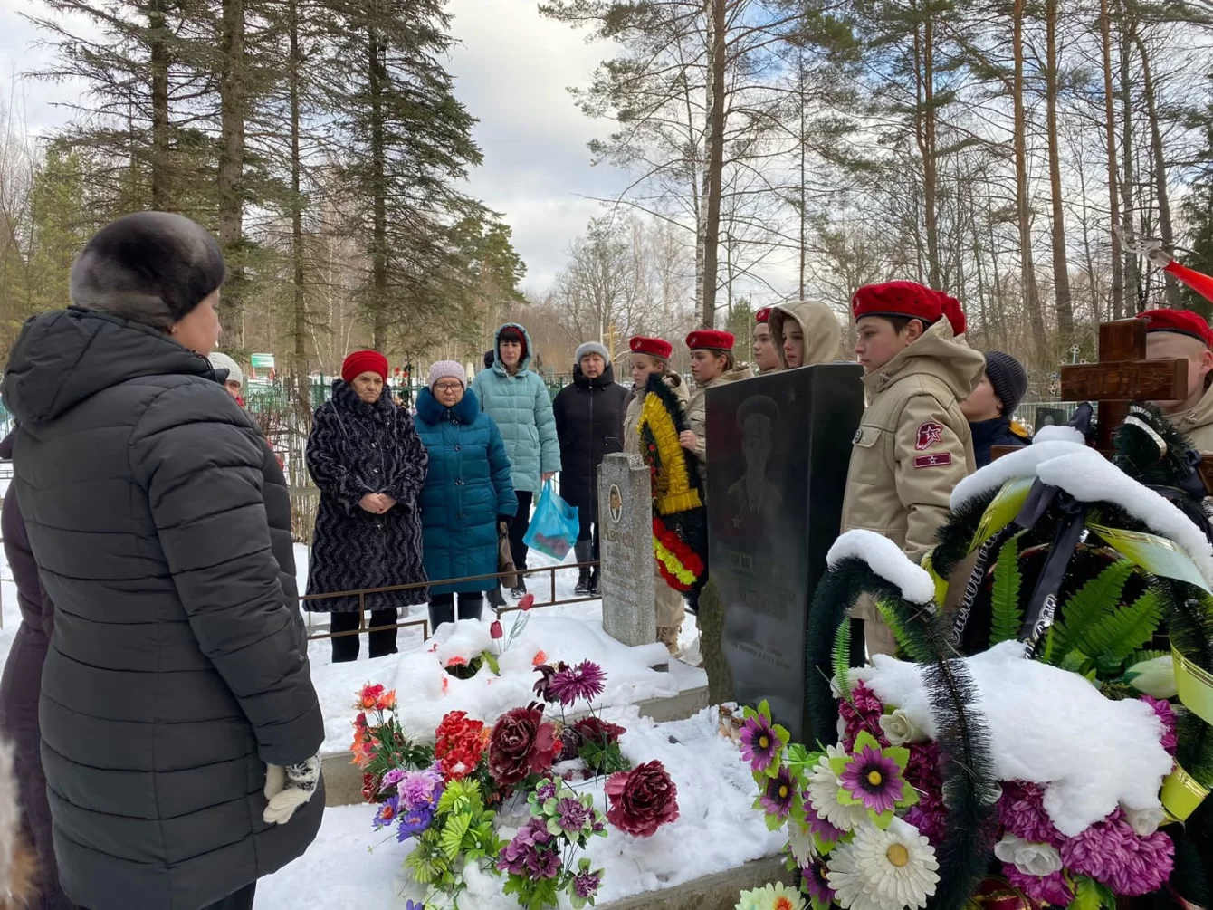 Представители общественных организаций, юнармейцы, волонтёры и школьники возложили цветы к мемориальной доске Александра Авуева.