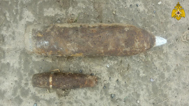 Второй раз спасатели обезвреживали ВОП в селе Косьяново. Специалисты нашли два артиллерийских снаряда 76 мм и 150 мм. Как уточнили в ведомстве, все снаряды пролежали в земле со времен Великой Отечественной войны.