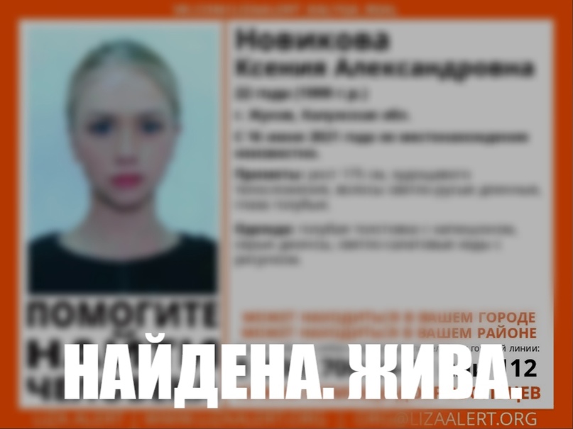 Во вторник вечером, 22 июня, в группе «Лизы Алерт» Калужской области во Вконтакте объявили о том, что девушка найдена живой. Напомним, что Ксению Новикову объявили в розыск днем 22 июня.