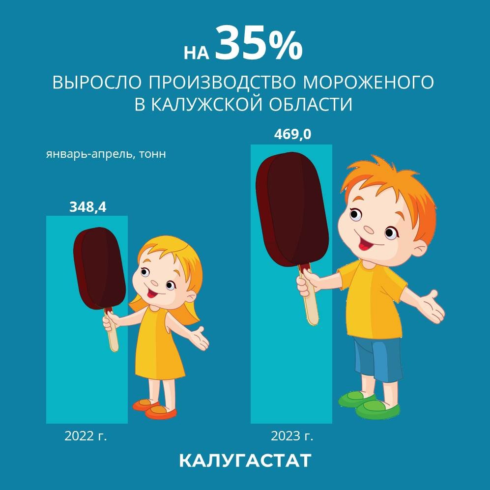 С января по апрель этого года в Калужской области было изготовлено 469 тонн мороженого. За аналогичный период прошлого года было произведено порядка 350 тонн десерта.