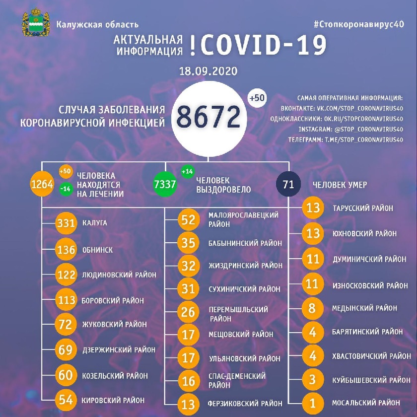 За сутки набралось 50 заболевших. За весь период пандемии заразилось 8672 человека.