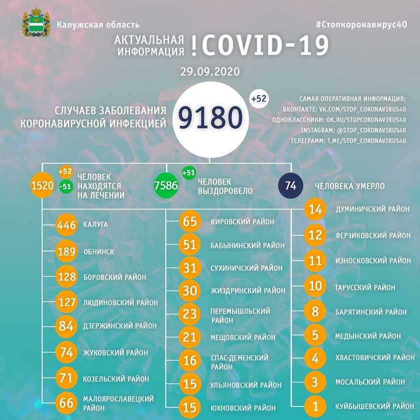За все время пандемии в нашем регионе заболело 9180 человек, а за последние сутки заразились 52 из них.