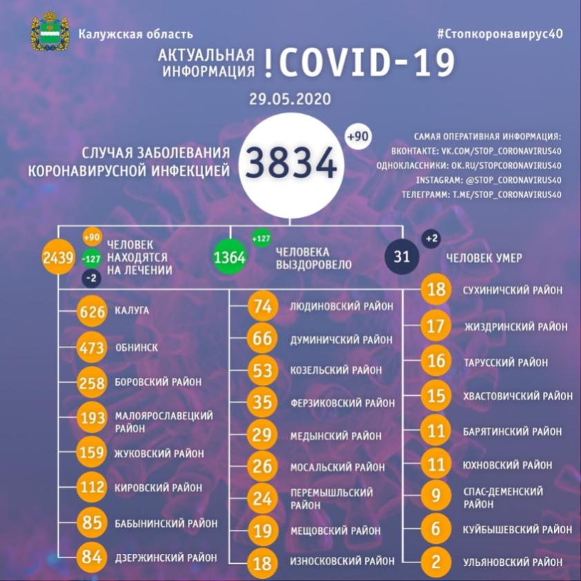 31 человек умер, два новых подтверждённых случая: житель Обнинска 1943 года рождения и житель Малоярославецкого района 1958 года рождения.