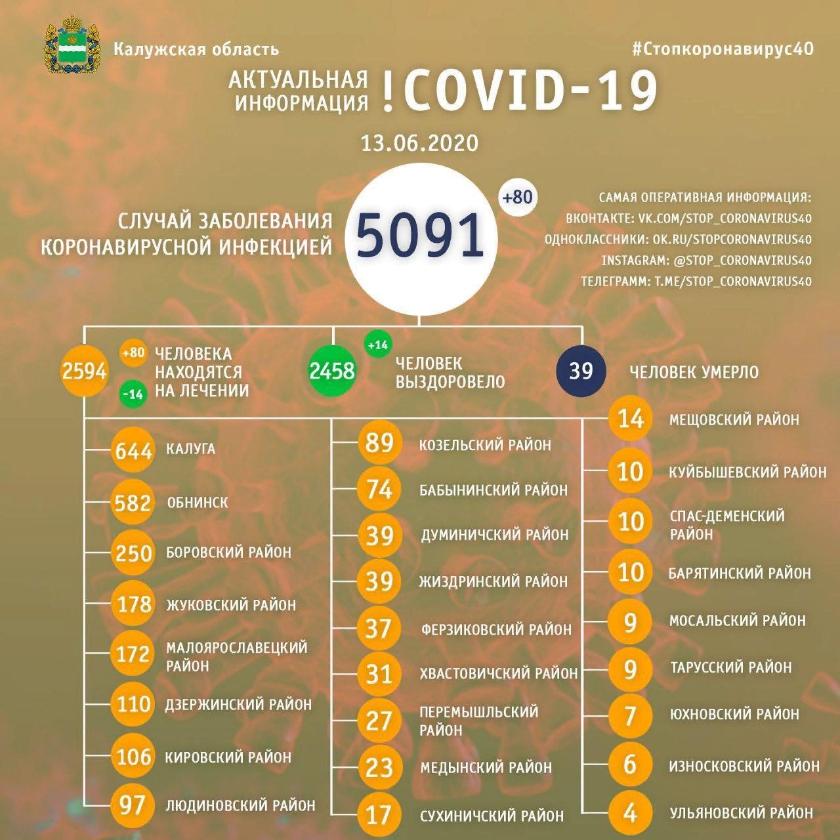 Общее количество случаев заболевания составляет 5091. За минувшие сутки было выявлено 80 новых случаев.
