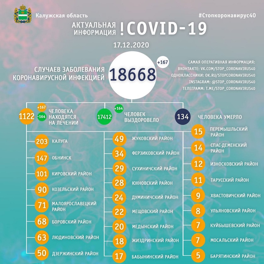 Умерло 134 калужанина. За последние 24 часа новых случаев не выявлено.