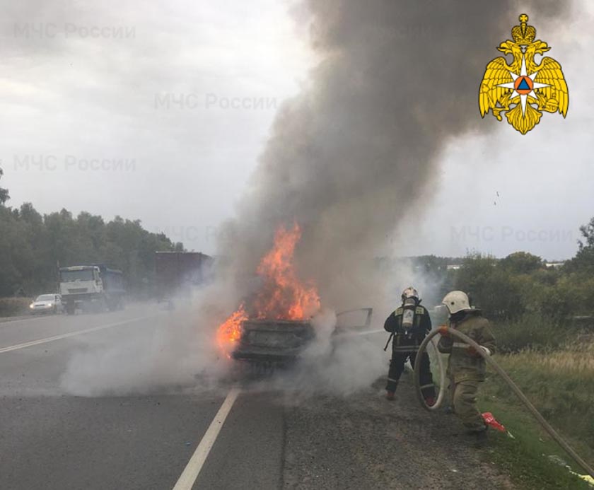 На участке Киевского шоссе от Обнинска до Балабанова в Калужской области сегодня загорелась машина.