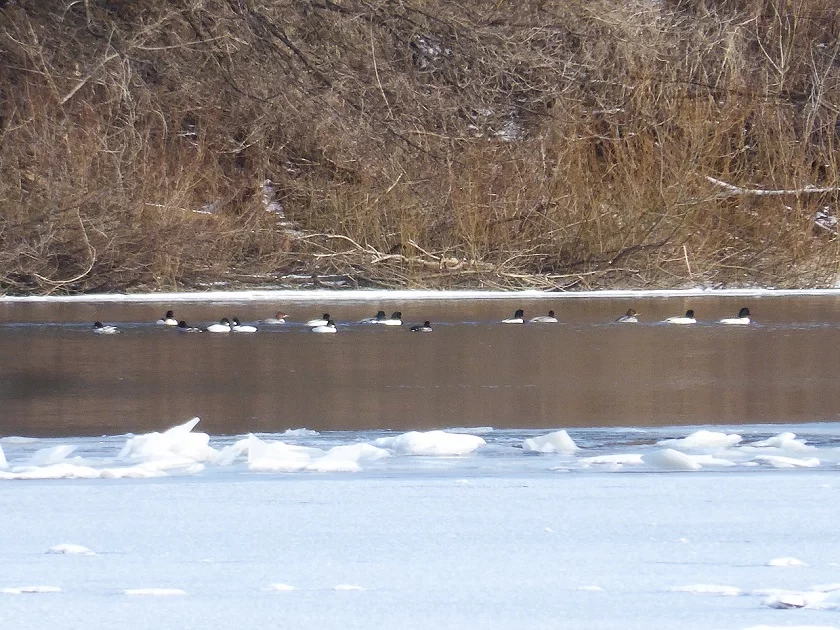 22 февраля эксперт учёл на них 395 гоголей и 27 больших крохалей. Также на реке Оке у очистных сооружений было замечено до 500 крякв. В этот же день вниз по Оке пролетели две белоголовые чайки.«Не исключаю, что это были пролётные, а не зимующие птицы, бродяжничающие по реке, так как пролетели вниз по течению, но обратно не вернулись», - рассказал Юрий Галченков.