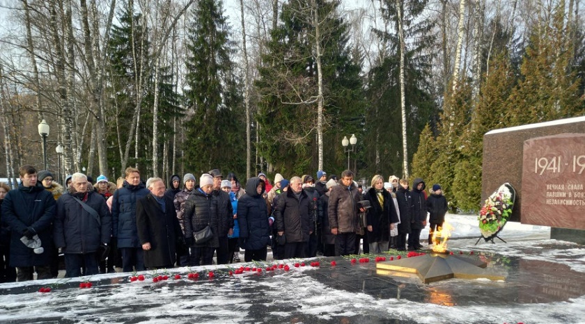 Сегодня, 2 декабря, в Обнинске у мемориального комплекса "Вечный огонь" собрались представители власти, школьники, волонтеры и поисковики отряда "Память", чтобы возложить цветы и почтить память неизвестного солдата. В частности, в мероприятии приняли участие мэр Обнинска Татьяна Леонова, заместитель Председателя Обнинского городского Собрания Владимир Светлаков, координатор «Школьных отрядов» Калужского регионального отделения ВОД «Волонтёры Победы» Татьяна Жеглатая и начальник обнинского учебного центра ДОСААФ Игорь Полухин.