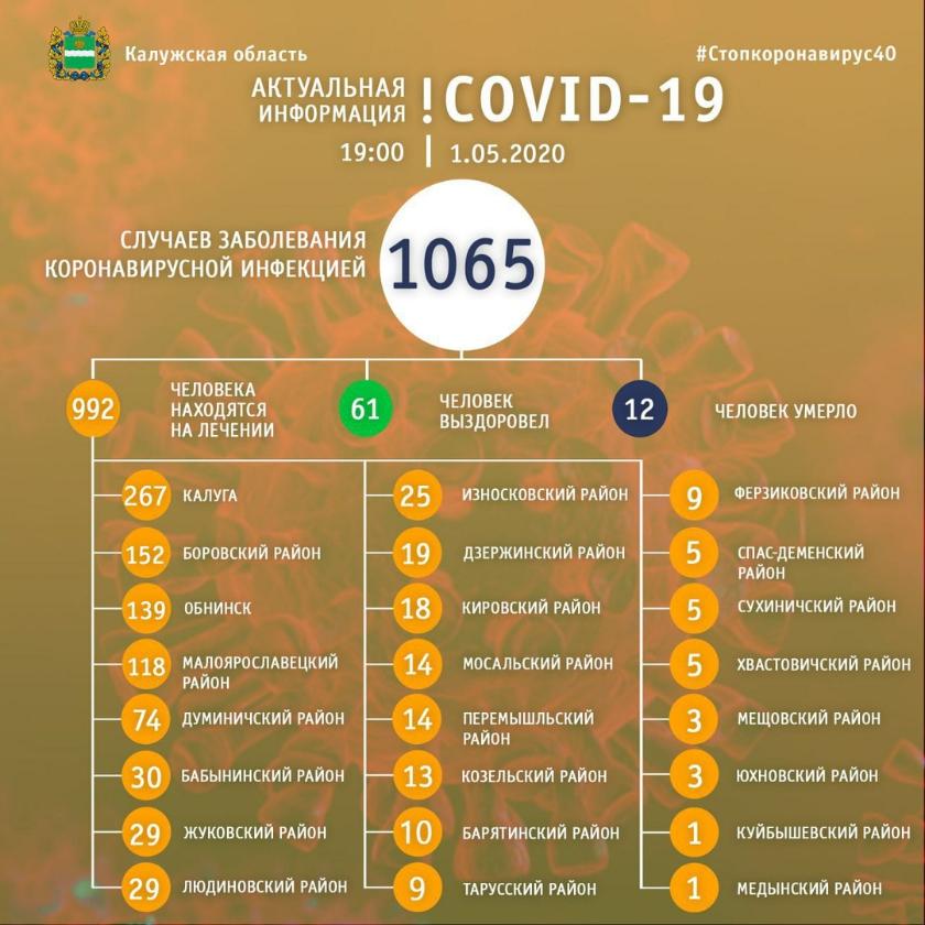 Согласно сводке на семь часов вечера первого мая всего в регионе зафиксировано 1065 случаев коронавируса.