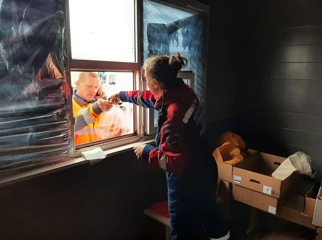 Также людям в очереди помогают и добровольцы. Волонтеры движения #МЫВМЕСТЕ развернули штаб возле переправы. Активисты выдают продукты и воду всем нуждающимся. Ожидающие переправы люди бесплатно снабжаются всеми продуктами первой необходимости.