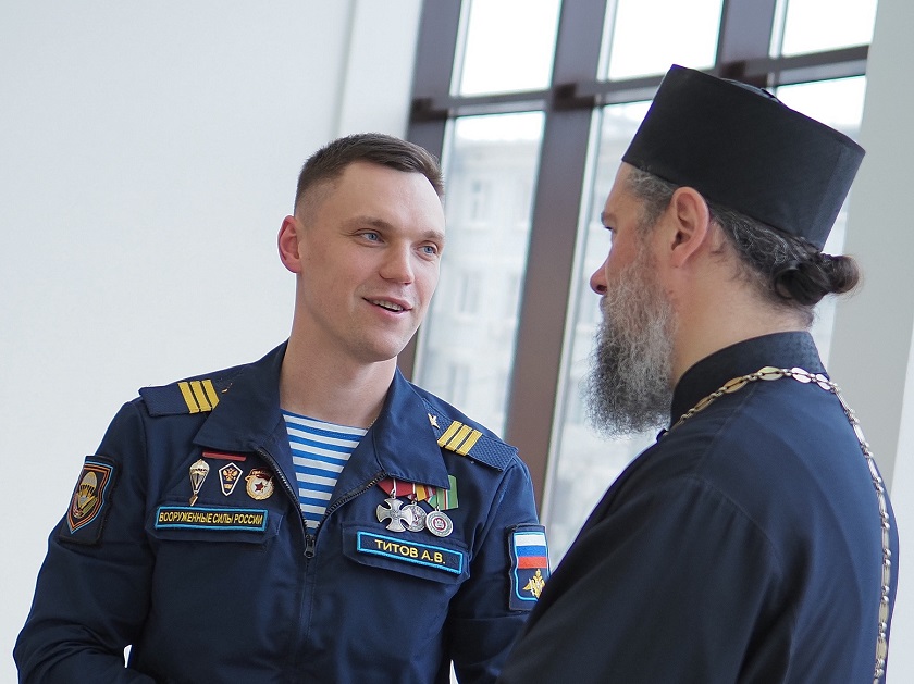 Отец Тихон начал свое выступление с благодарности воинам, которые сейчас воюют против украинского нацизма и совершают ратные подвиги во имя защиты Отечества. Священнослужитель знает об этом не понаслышке, поскольку сам проходил срочную службу в армии, а после начала СВО духовно окормлял бойцов Первой славянской бригады в ДНР.