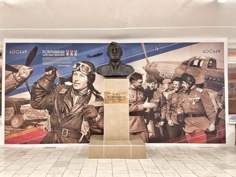 Сегодня, 4 марта, холле здания Регионального отделения «Добровольного общества содействия армии, авиации и флоту» (ДОСААФ) в Калуге был торжественной открыт бюст маршала Александра Покрышкина.